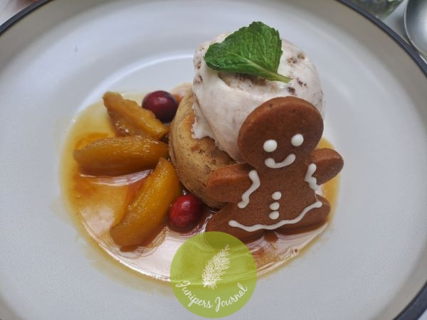 Caramelized apple, house-made gingerbread, ice cream, gingerbread cookie