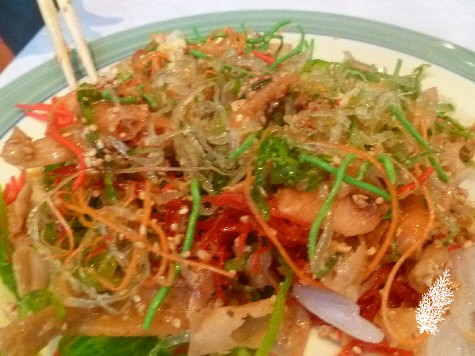 They have a “yee sang” station where you can combine whatever ingredients you want with the sauces, spices and oil. Only snag was all the ingredients had spoons in them instead of more practical tongs. Try picking up the crispy ingredients or even the preserved vegetables with a spoon and you will know what I mean. Tricky! There’s a big bowl where you can mix everything together but I just piled it on to a big plate and mixed everything together back at my table. Saves time!