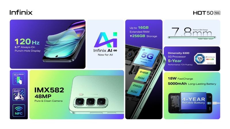 Infinix, a trendy tech brand crafted for young consumers is excited to launch its latest innovation, the Infinix HOT 50 5G, a revolutionary smartphone designed for a generation driven by creativity, exploration, and trendsetting. Featuring state-of-the-art technology and an ultra-slim, sleek design, the Infinix HOT 50 5G redefines the entry-level 5G smartphones by offering unmatched performance, durability, and power. As the “strongest entry-level 5G performance king,” this device brings next-generation technology to