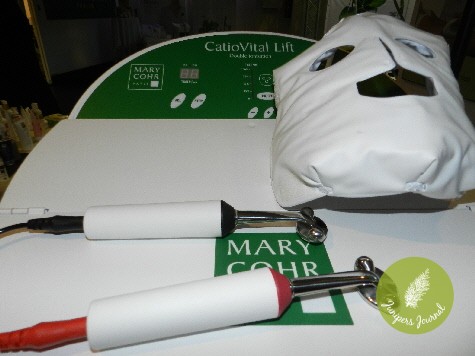 Mary Cohr’s facial machine is quite unusual. For one thing, the heating mask is placed on the customer’s face instead of a steam machine prior to extraction. I was assured that the mask won’t be too uncomfortable and it’s better for skin than being under a steam machine.
