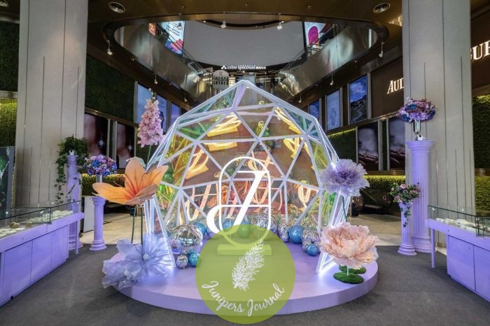 Designed around a “purple garden” concept, the pop-up’s centrepiece is its floral dome installation, featuring mirrored reflections and elegant violet blooms to create a dreamy, photogenic environment. Visitors can step into the dome for a unique visual experience that blends festive ambience with artistic expression.