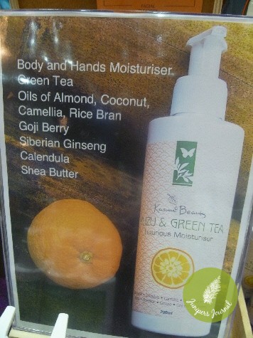 Yuzu & Green Tea Hand & Body Moisturiser also contains oil of almond, coconut, camellia, rice bran, goji berry, Siberian Ginseng, calendula and shea butter.
