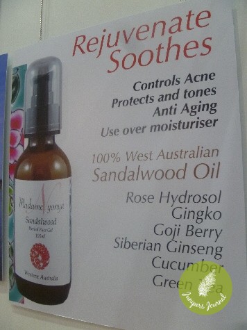 The Madame Nyonya Sandalwood Herbal Oil is multi-purpose as dry and oily skins can benefit. It contains 100% West Australian Sandalwood Oil, Rose Hydrosol, Gingko, Goji Berry, Siberian Ginseng, Green Tea and Cucumber.