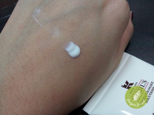 The first time I used it, I found that the texture was like your typical face lotion when it came out from the tube. It was very easy to spread therefore a little goes a long way. No fragrance was noted. Make sure to spread it out evenly, if not you will end up looking a bit pale from the white cast. My face looked fairly shiny during the first 5 minutes of application, however after 15 minutes, the product seems to have absorbed into the skin. There was no more shininess and my skin feels very moisturized.