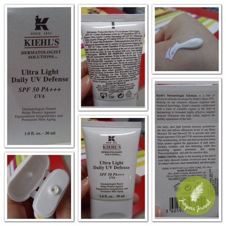 Kiehl’s Ultra Light Daily UV Defence SPF 50 pa +++ 30ml comes in a squeeze tube and is a non-greasy sunscreen with a superb-light fluid texture that will not clog pores. Contains photostable sun filters Mexoryl SX & Mexoryl XL. Formulated with antioxidant Vitamin E & nourishing Glycerin. It offers powerful, long-lasting sunscreen protection. It is dermatologist-tested, non-comedogenic and fragrance-free. The product was made in France.