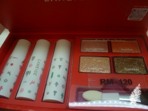 Winterland Hand and Lip Care Set, RM 100 This is a delightful gift set comes with two beauty must-haves i.e Satin Laneige Moisture Hand Cream and Laneige Moisture Lip Balm to keep the skin hydrated at all times. The Satin Moisture Hand Cream contains mineral water and mixed seed (Sesame, Andiroba and Camelina) oil that effectively hydrates the skin. It is formulated with Softening Complex™, which gives it a light and refreshing texture for better absorption into the skin without greasiness. The Laneige Moisture Lip Balm functions in three ways; supply hydration to the lips, heal chapped lips and prevent wrinkles. It is developed using the Water Friendly Polyols Technology and formulated with Lip Care Complex, which give the lips resistance against wrinkle, plumps up the lips and speeds up the healing process of chapped lips.