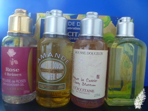 There’s the Rose, Cherry Blossom and Verbena Shower Gels as well as the Shower Oil. Of the 4, I like the scents of the Verbena Shower Gel and Shower Oil the most. The scents of the Rose and Cherry Blossom are quite mild compared to the other 2.