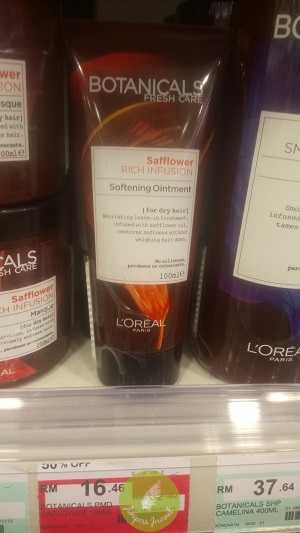 There were two tubes of L’Oréal Paris Botanicals Fresh Care Safflower Rich Infusion Softening Ointment on the shelves at Watsons Amcorp Mall and the product is currently at 50% discount (normal price RM32.90) and I was debating whether to get a tube since it promises a soft hair effect.
