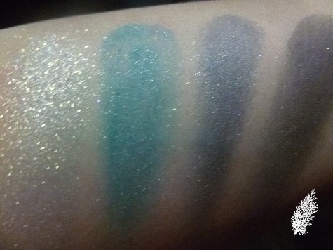 The colours in the Emerald Conquest quad are very dense and pigmented. However, it can get a bit powdery and crumbly when picking up with fingers so be gentle if using fingers or use a brush/sponge tip applicator. I do like the turquoise and I think all the colours complement each other well enough to create a smoky look if required.