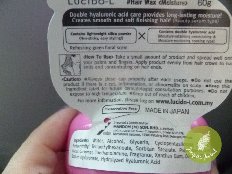 I’d always wanted to try Lucido-l Hair Wax Moisture as it’s supposed to provide a moisture coating to frizzy hair and smoothen unruly and frizzy hair. I’ve noticed this small pink tub at Guardian and Watsons outlets for a long time and finally picked one up recently.