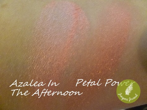 AZALEA IN THE AFTERNOON mid-tone blue pink, PETAL POWER coral pink with gold shimmer