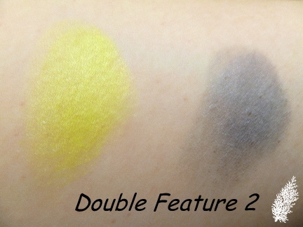 Double Feature 1 has Golden Lemon and Nocturnelle in it and as the name Golden Lemon suggests, it’s really vibrant and an outstanding golden yellow colour. However at first look, I couldn’t for the life of me figure out how a colour like that could be paired with Nocturnelle, a purple.