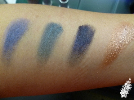 Love the pigments in Midnight Blue, went home with one of them. From l-r, Blue Storm, Emerald Dusk, Starless Night & Tan.