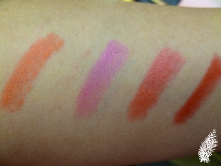 The 4 lipsticks (RM68) in Wild Colour are (from l-r) Neon Orange, Show Orchid, Fusion Pink & Ruby Woo.