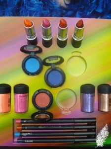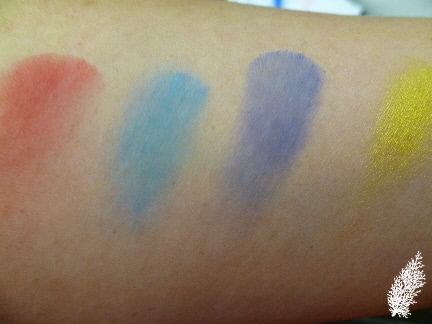 4 pigments (from l-r) are Magenta Madness, Neo-Orange, Violet and please disregard the last swatch (Tan) as it is in the 3rd part, Midnight Blue (RM82). Magenta Madness and Neo-Orange are very vibrant colours, not exactly suitable for wearing to work but great for photo shoots. Violet is in the permanent range.
