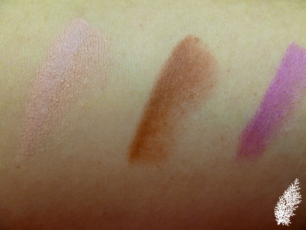 I could only swatch 3 of the 4 lipsticks as Plum Bright has been sold out and so from l-r, they are Fleshpot, X-S & Violetta.