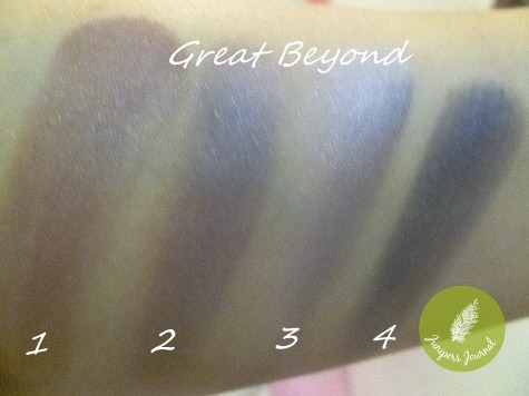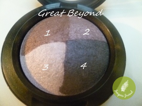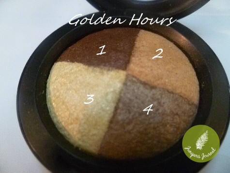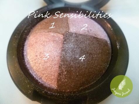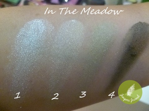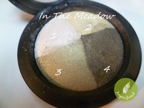 I have featured 2 of these eyeshadows before – In The Meadow and Pink Sensibilities. As they are mineralize, they can be used either dry or wet. It’s easier to use an eye shadow brush to pick up the colours rather than fingers as each shade is quite small. I’ve found that using fingers tends to transfer the neighbouring colour on to the colour I want. so if you want a ‘clean’ colour, it is best to use a brush. All the shades have a frost texture.