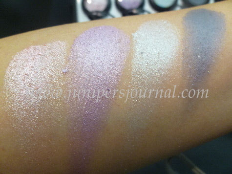Angelic (off white), Flicker (pastel yellow), Enlightening(deep silver), Deeply Daring (high pearl powder in NW55 shade)