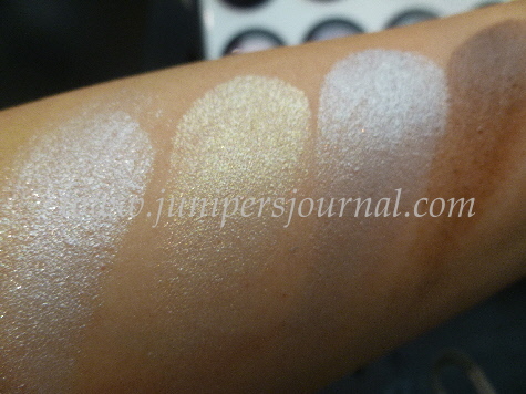 L to R – Jet Couture (charcoal black), Blonde Streak (light cream), Day Gleam (high pearl powder in NC30 shade), Light Touch (high pearl powder in W10 shade)