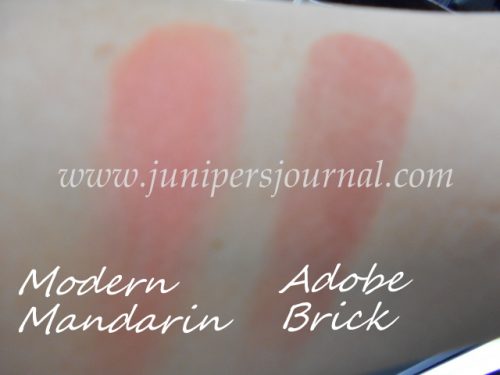 The Powder Blush retail at RM98. Modern Mandarin is quite a nice red-orange while Adobe Brick is a burnt red and would suit darker skin tones.