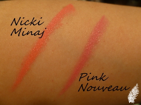 The Nicki Minaj lipstick wasn’t as pink on my lips as I thought it’d be. It’s creamy and feels a bit drying which is when the Lip Conditioner comes in handy. It’s less blue-pink and warmer than Pink Nouveau, one of MAC’s best-selling pink lipsticks. Have a look at the images below for comparison.