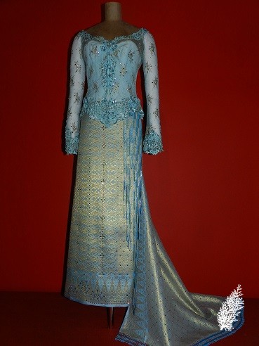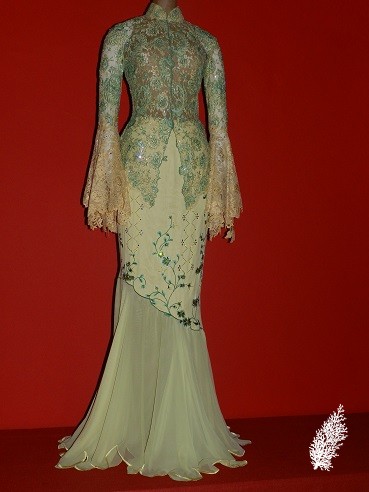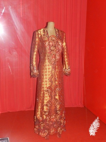 The more elaborate gowns were made for the Brunei royal family weddings and the fabrics used are special fabrics manufactured in Brunei. These are spectacular gowns which must have taken months of meticulous workmanship.