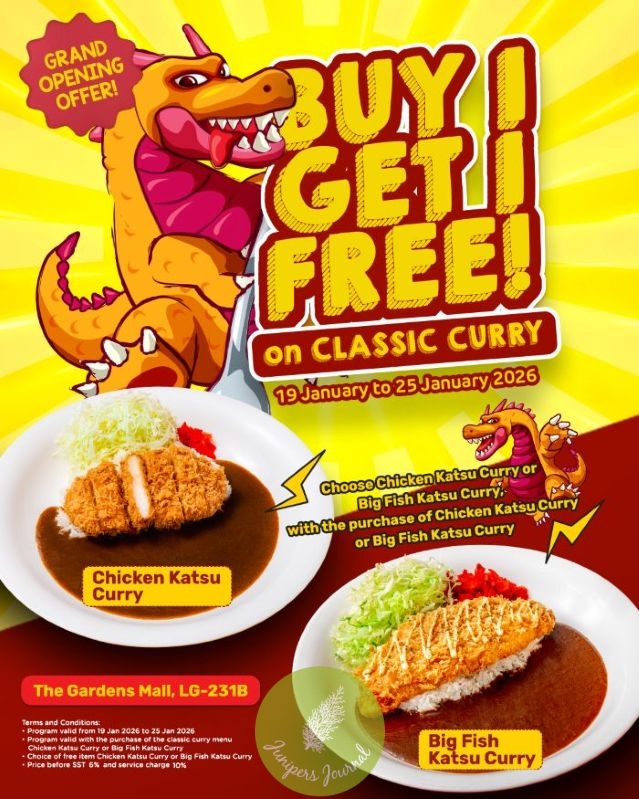 To celebrate its Malaysian debut, Monster Curry is rolling out an irresistible Buy 1 Get 1 Free promotion from 19 to 25 January 2026. Guests who purchase either the Chicken Katsu Curry (RM 24.90) or Big Fish Katsu Curry (RM 28.90) will receive another classic curry of their choice of either the Chicken Katsu Curry or Big Fish Katsu Curry – absolutely free.