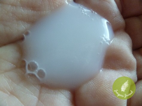 It looks rather fluid but once you apply it on your face, it doesn’t run. It adheres very well and stays put for the 5 to 10 minutes you are recommended to have it on.