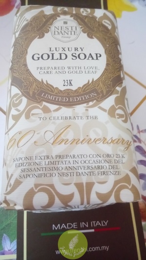 This soap celebrates the sixtieth anniversary since the founder of Nesti Dante prepared his first cauldron in France. This is a beautiful soap with equally stunning paper wrapper. 23 carat gold leaf is used to manufacture this luxurious soap. Recent biological studies have scientifically tested the mineral in terms of efficacy on cellular regeneration and protection against free radicals, highlighting its antioxidant powers. The soap is further enhanced by the note of Noble Iris, the flower and symbol of Florence. This is a limited edition soap available on www.frenshi.com.my
