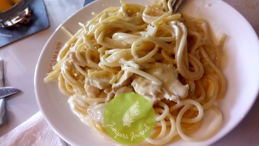 Main course was spaghetti carbonara with pepperoni chicken. This dish is on the menu at RM26. The spaghetti was cooked al dente which is good as I like firm to bite pasta. The sauce was creamy and thick. I would say the taste was average. It wasn’t inedible but it wasn’t something I would go back to the restaurant and order as I believe some herbs could have been incorporated to improve the flavour.