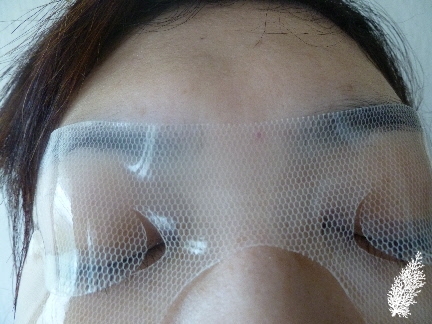 This is more than an eye mask as the sheet reaches all the way to apples of the cheeks. I think it’s much better than the regular eye mask which only covers the immediate under-eye area. I didn’t stick this in the fridge prior to using because I wanted to see how cool it’d be without being in the fridge.