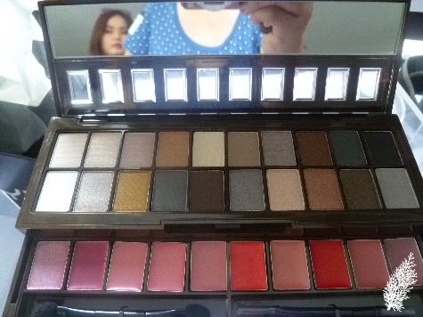A palette with 20 neutral eye shadows and 10 vibrant lip colours. Comes with 2 applicators and mirror.