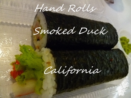 Sushi Q’s hand rolls are not in the usual conical shape. These are rolls with the ingredients going all the way from top to bottom so that you have the same taste from beginning to end. With conical shaped California Rolls, there’s only rice by the time I get to the middle.