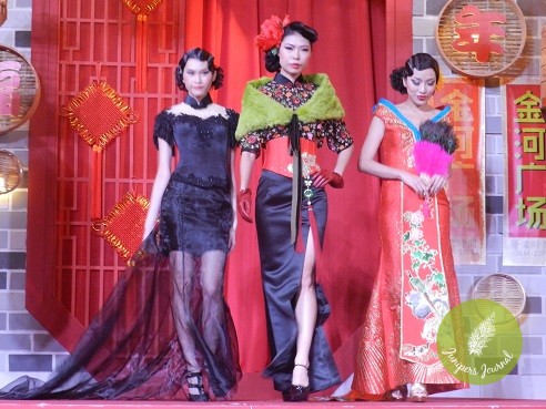 “95% of the cheongsams are focused on flashy red and gold adorned with carefully sewn sequins, embroidery. Dragon & Phoenix are two popular designs on cheongsams as they symbolize love and togetherness. The Dragon represents the male while the Phoenix represents the female,” said Kenneth. he further added that this year’s show is themed to be retro dramatic and Old Shanghai to promote the golden era cosmopolitan period of Shanghai. Exaggerated hair-do and flashy make-up are among the highlights of the show. Kenneth co-operated with Sophia Ang of Mode Make-Up and Hair Academy for the make-up sponsorship and Kelvin Chong as the Image Consultant.