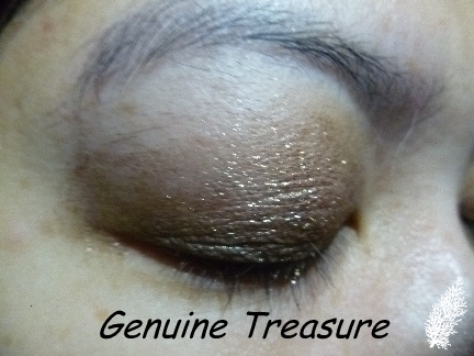 Genuine Treasure is smooth and appears to be quite sheer. Of course, all the Paint Pot colours are buildable. To me, Genuine Treasure is the lighter version of Gilt. There is a fair bit of gold shimmer/sparkle in Genuine Treasure. I do like the bling-bling factor especially in black gold eyeshadows. I guess it’s a matter of personal preference. I have no qualms about using Genuine Treasure together with Gilt for a day look.