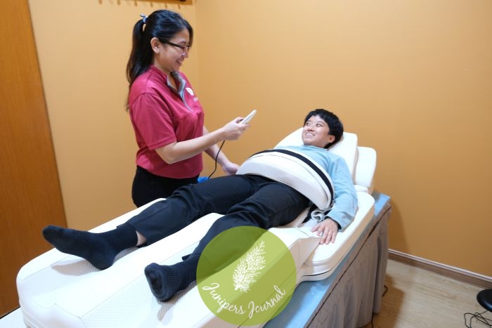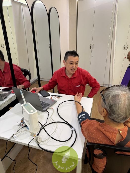 In addition to the arterial stiffness check, these seniors will also undergo Andullation Therapy. This treatment utilises vibrations and heat to enhance circulation, alleviate muscle pain, and improve sleep quality, thereby improving their physical health.