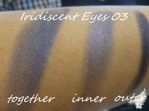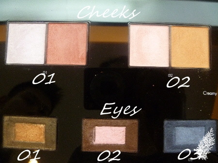 There can be little doubt that the Collection focuses on the eyes with the 6 Deep Iridiscent Eyes, duo-shades made with polarized pearlescent particles. The darker shade on the rim is black combined with the shade in the centre and is applied on the eye socket while the shade in the centre is layered over the darker shade to magnify the effect of the black shade.