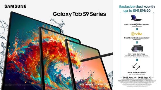 [7] Free Book Cover Keyboard is an in-box item for selected model only; Book Cover Keyboard for Galaxy Tab S9 Ultra worth RM1,499; Book Cover Keyboard for Galaxy Tab S9+ worth RM999; Book Cover Keyboard for Galaxy Tab S9 worth RM899.