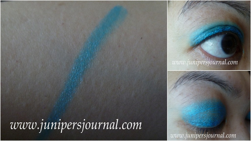 So I have just one jumbo liner and it’s Turquoise, it’s a bright shade of blue and it glides on my eyelids so smoothly that there is zero tugging or pulling. It can be used as eyeshadow base if you want more intensity but I don’t think there is any need to layer on more powder eyeshadow as this is beautiful on its own even without any primer underneath.