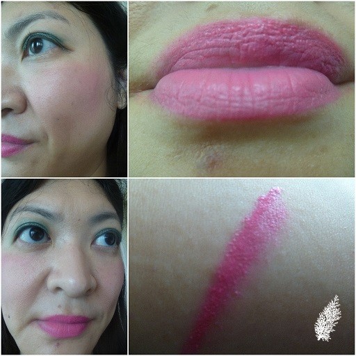 Although I don’t usually wear pink shades on lips and cheeks, I have to say this one looks quite good. It’s not too bright for cheeks, adds just the right amount of pink flush so that my complexion doesn’t look sallow and dull. Very cheerful colour too for both lips and cheeks.