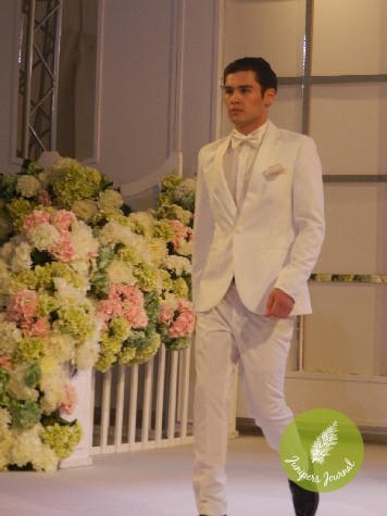 In shades of white, off-white, ivory and rose-gold, his gowns for SK-II are modern, elegant and sophisticated with traditional accents in the detailing. French lace and textured fabric were used to highlight the cuts while the men’s suits featured tuxedo cutting and classic cuts with ties and bow ties.