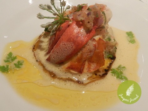 Poached Boston Lobster Salad on Grilled Mango with Truffle Oil