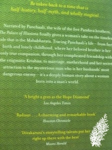 It’s impossible to summarise The Mahabharata since it’s a Sanskrit epic approximately 10 times the length of Homer’s Odyssey and The Iliad combined. Before picking up Chitra Banerjee Divakaruni’s “The Palace Of Illusions”, I remembered bits and pieces of what I’d read so far on The Mahabharata from the past.