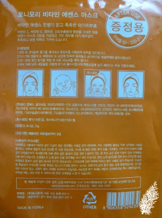 So my very first Tony Moly product is their Vitamin Essence Mask thanks to Camie who brought it all the way back from Seoul. The product description and list of ingredients are all in Korean as I guess all Korean products sold within Korea aren’t translated into English.