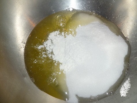 Into a large bowl went the egg whites, sugar, white vinegar, boiling water, maizena (corn flour) and rose water (this smells wonderful) and it was whisked for 10 minutes.