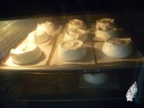 Into the oven they go and they have to be baked for 55 minutes. Patience is so necessary with this dessert but on to other things while these little beauties are being cooked.