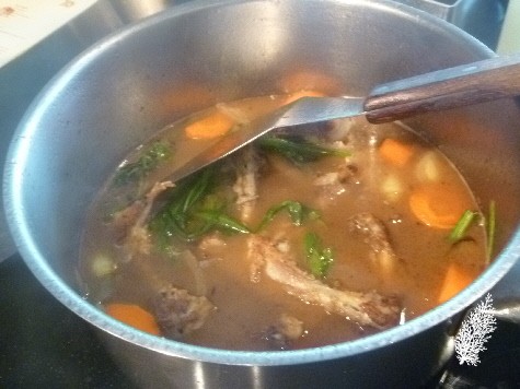 Look what’s cooking over at the other team. It’s the Chicken Short Jus which has chicken bones, onion, leek, celery, Bouquet Garni (Bay Leafs, Thyme, Italian Parsley), carrots, chicken stock. Doesn’t it just look simply yummy? Like a hearty home-made soup.
