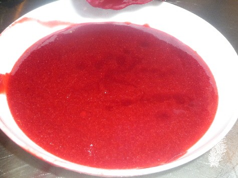 Over at Team Pavlova, we were preparing the raspberry coulis which has just 3 ingredients – raspberries, water and sugar. This is very simple as the water and sugar go into a saucepan for heating on the stove until the mixture is reduced to ¼. Then pour the hot syrup over the frozen raspberry purée and blend it all together. Keep it aside till ready to serve.