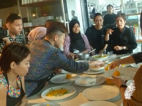 So for the hands-on organic cooking experience, we were asked which course we’d like to cook, either the chicken main course or the pavlova dessert. It was a no-brainer for me since I have baking experience and main courses aren’t my forte as much as desserts are. Those of us who chickened out gathered around one table where the ingredients had already been laid out to save time. I had a quick glance at the main course recipe and was glad I chose the dessert as the chicken recipe looked a lot more complicated.