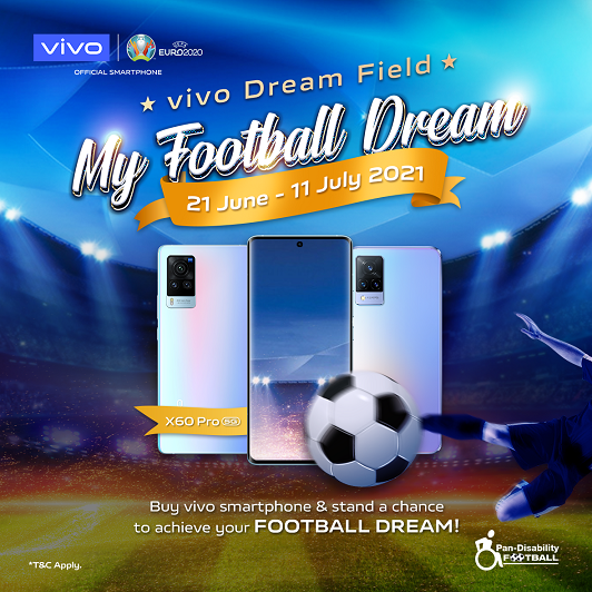 In conjunction with the ongoing UEFA EURO 2020™ tournament, vivo Malaysia is holding a nationwide contest, known as “My Football Dream”, which offers customers with an opportunity to share their football dream and stand a chance to win a mystery gift from vivo.
